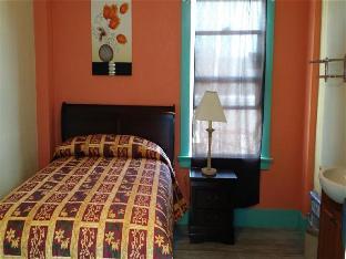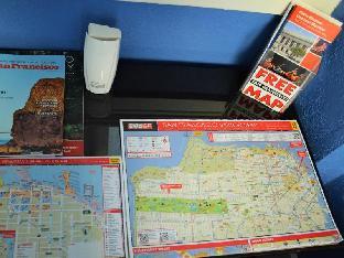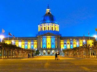 The gallery reflects the property’s practical character: compact rooms with hardwood flooring, simple furnishings, and bright lighting. Images of the building exterior showcase its historic San Francisco architecture, while interior shots highlight shared facilities and the welcoming front desk.